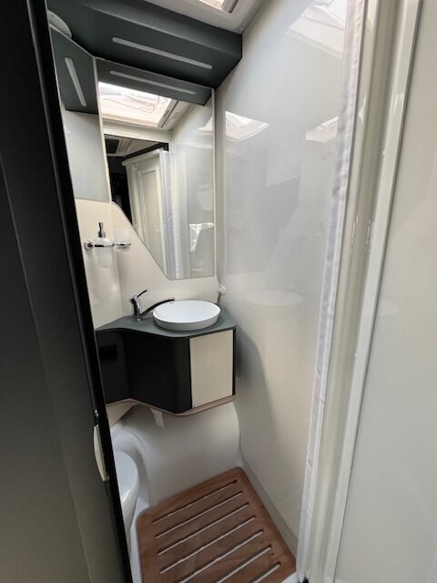 Doordat de douche en toilet in 1 ruimte zijn geplaatst ontstaat er extra comfort en een ruim woongedeelte.