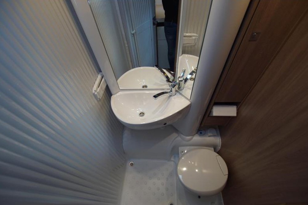 Doordat de douche en het toilet in 1 ruimte zijn geplaatst ontstaat er extra comfort en een ruim woongedeelte.